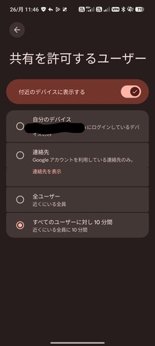 出てきたクイックシェアの画面は