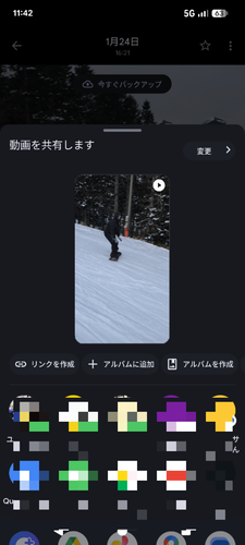 モザイクの左下のクイック共有だかクイックシェアをタップね