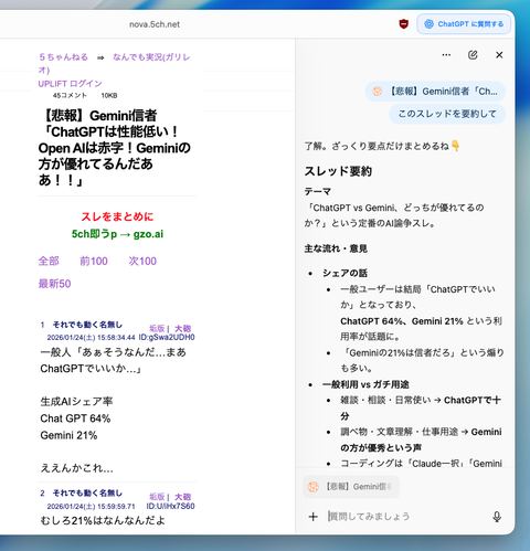 ChatGPT Atlas使ってるののこのスレでワイだけっぽいな